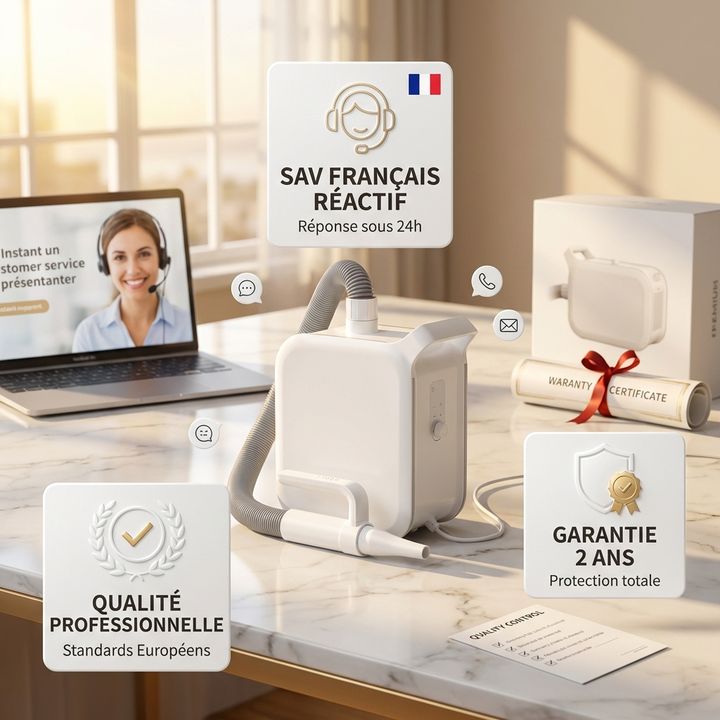 Consommation énergétique de seulement 1750W malgré sa puissance exceptionnelle. Permet des économies substantielles sur vos factures d’électricité et réduit les visites coûteuses chez le toiletteur (rentabilisé en 3-4 séances).